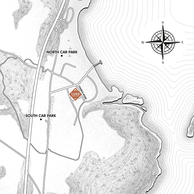 Our closest train station is Balloch which can be easily reached from Glasgow Central or Glasgow Queen Street stations. Balloch Station is a short 2-minute walk to the Craiglomond Gardens bus stop, where you can catch the 305 McColl’s bus to Luss. The bus will drop you off in the Luss Visitor Centre Car Park (North Car Park). Our distillery can be reached by following signs for the village centre. We are located on Church Road.